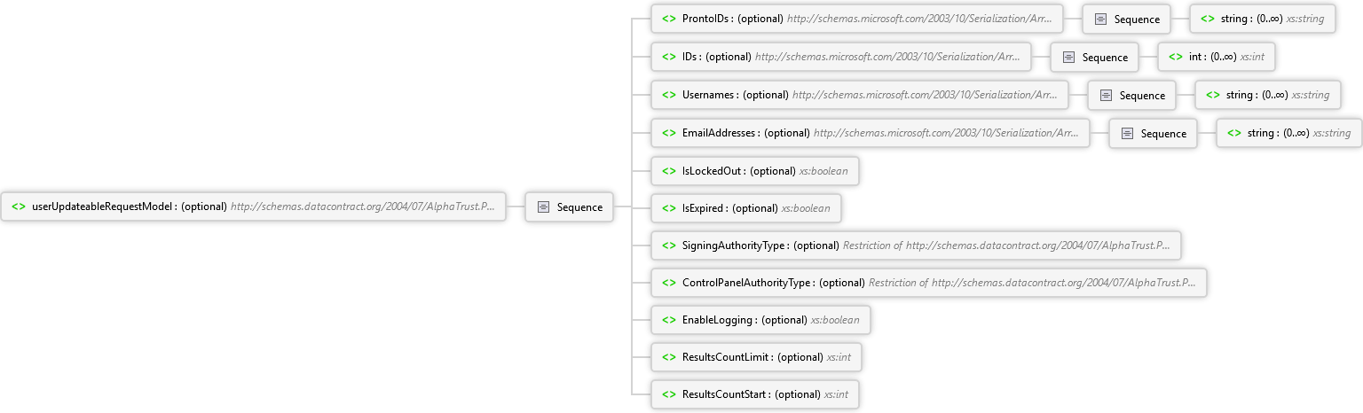 <xs:element minOccurs="0" name="userUpdateableRequestModel" nillable="true" type="q157:UserUpdateableRequestModel" xmlns:q157="http://schemas.datacontract.org/2004/07/AlphaTrust.Pronto.ServiceContracts.Models.User" xmlns:xs="http://www.w3.org/2001/XMLSchema" /> |