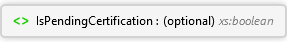<xs:element minOccurs="0" name="IsPendingCertification" type="xs:boolean" xmlns:xs="http://www.w3.org/2001/XMLSchema" />