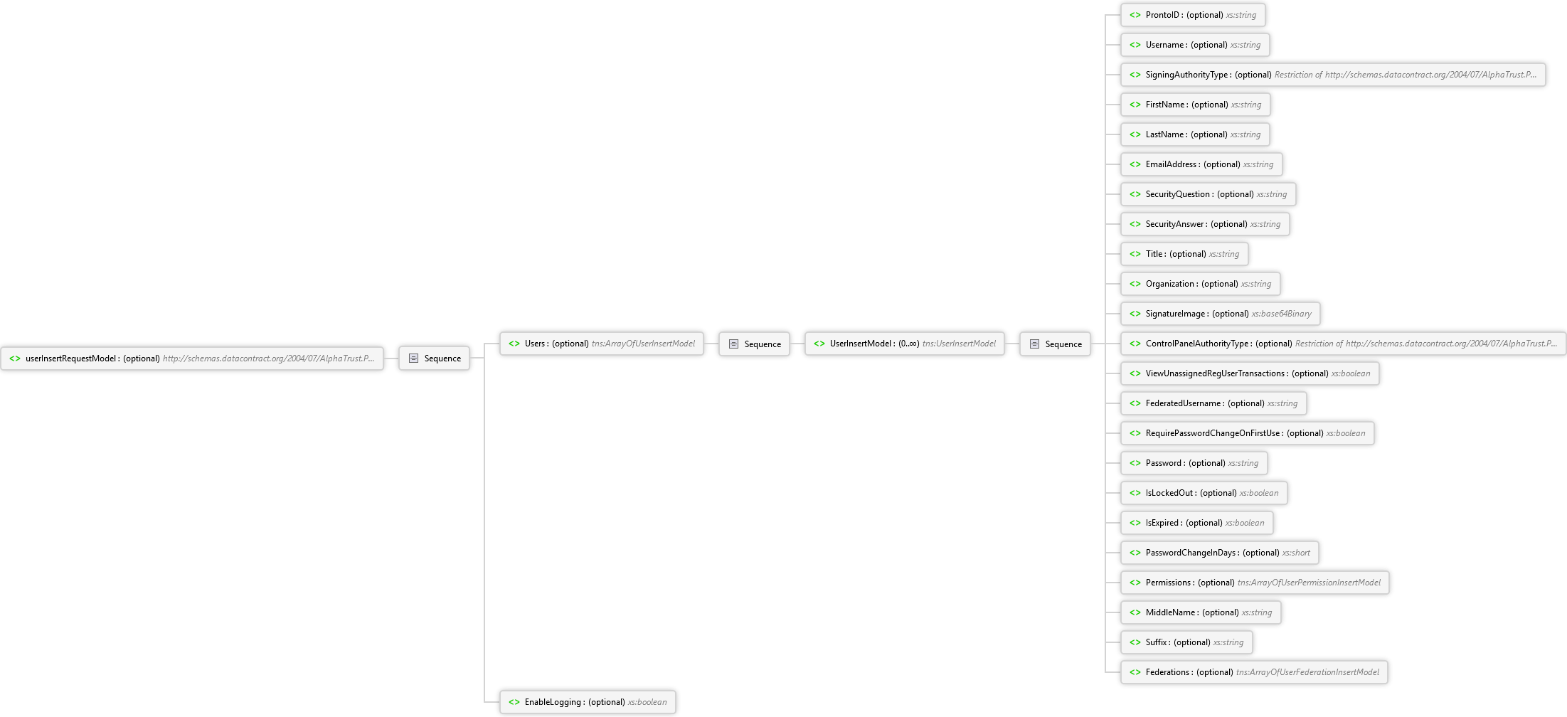 <xs:element minOccurs="0" name="userInsertRequestModel" nillable="true" type="q160:UserInsertRequestModel" xmlns:q160="http://schemas.datacontract.org/2004/07/AlphaTrust.Pronto.ServiceContracts.Models.User" xmlns:xs="http://www.w3.org/2001/XMLSchema" /> |