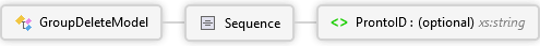 <xs:complexType name="GroupDeleteModel" xmlns:xs="http://www.w3.org/2001/XMLSchema"> <xs:sequence> <xs:element minOccurs="0" name="ProntoID" nillable="true" type="xs:string" /> </xs:sequence> </xs:complexType>