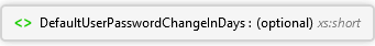 <xs:element minOccurs="0" name="DefaultUserPasswordChangeInDays" nillable="true" type="xs:short" xmlns:xs="http://www.w3.org/2001/XMLSchema" />