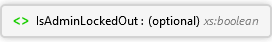 <xs:element minOccurs="0" name="IsAdminLockedOut" type="xs:boolean" xmlns:xs="http://www.w3.org/2001/XMLSchema" />