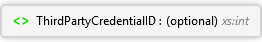 <xs:element minOccurs="0" name="ThirdPartyCredentialID" nillable="true" type="xs:int" xmlns:xs="http://www.w3.org/2001/XMLSchema" />