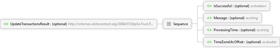 <xs:element minOccurs="0" name="UpdateTransactionsResult" nillable="true" type="q11:DefaultServiceReturnModel" xmlns:q11="http://schemas.datacontract.org/2004/07/AlphaTrust.Pronto.ServiceContracts.Models.ServiceReturns" xmlns:xs="http://www.w3.org/2001/XMLSchema" /> |