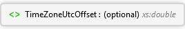 <xs:element minOccurs="0" name="TimeZoneUtcOffset" type="xs:double" xmlns:xs="http://www.w3.org/2001/XMLSchema" />