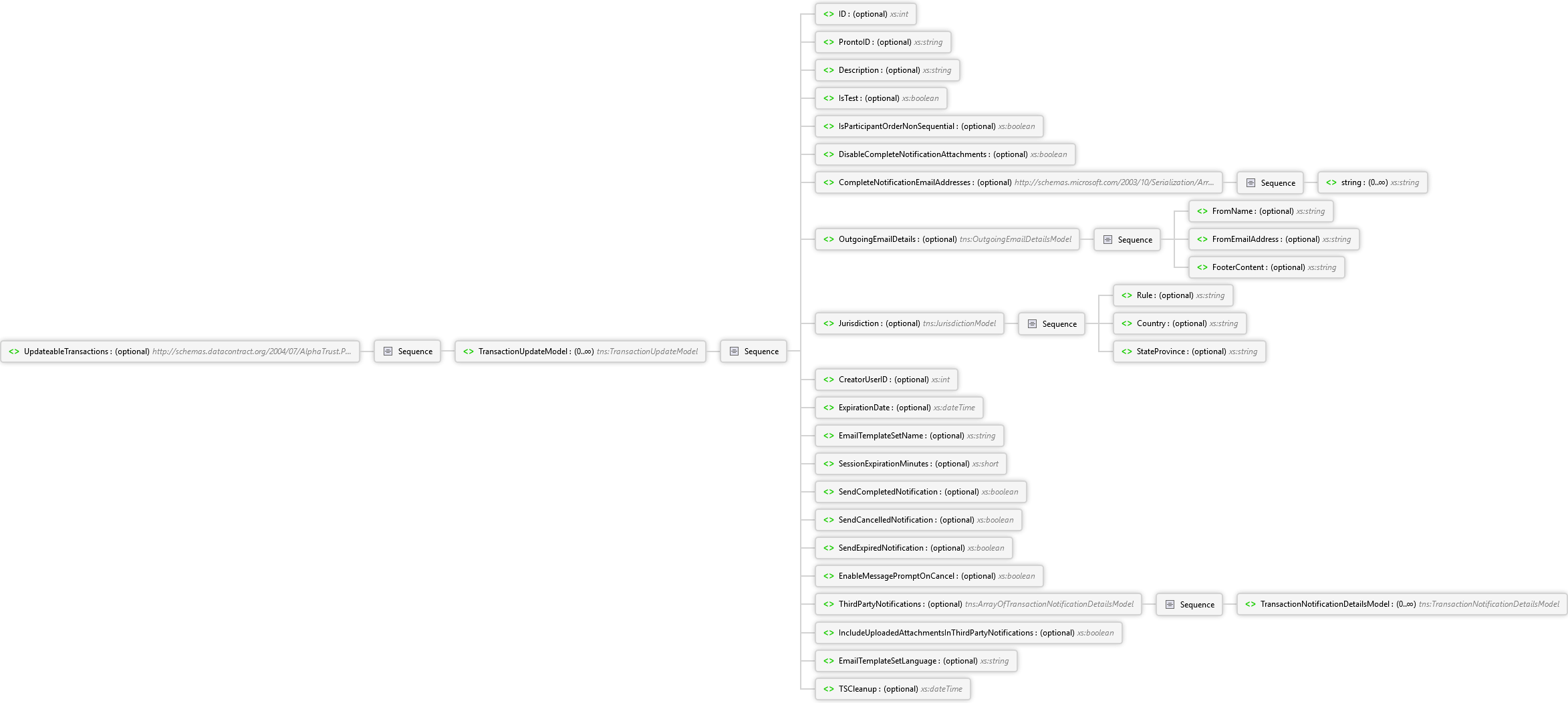 <xs:element minOccurs="0" name="UpdateableTransactions" nillable="true" type="q3:ArrayOfTransactionUpdateModel" xmlns:q3="http://schemas.datacontract.org/2004/07/AlphaTrust.Pronto.ServiceContracts.Models.Transaction" xmlns:xs="http://www.w3.org/2001/XMLSchema" /> |