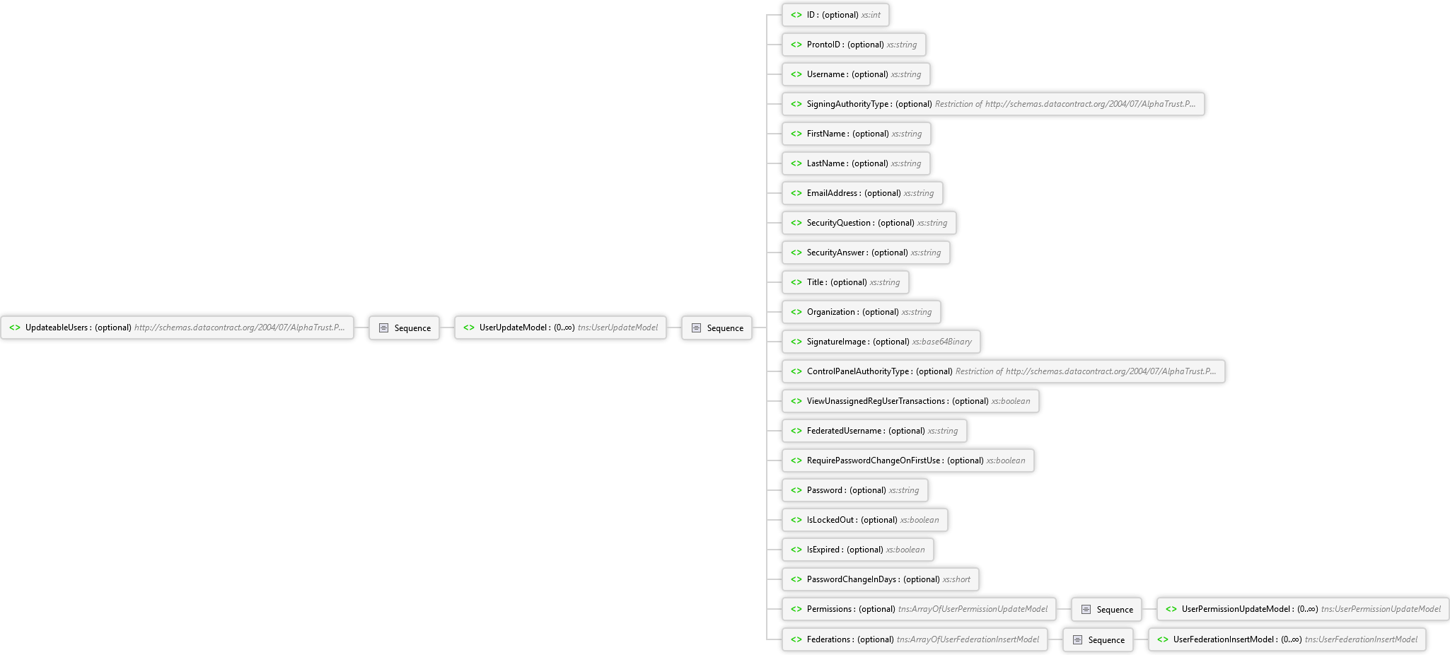 <xs:element minOccurs="0" name="UpdateableUsers" nillable="true" type="q27:ArrayOfUserUpdateModel" xmlns:q27="http://schemas.datacontract.org/2004/07/AlphaTrust.Pronto.ServiceContracts.Models.User" xmlns:xs="http://www.w3.org/2001/XMLSchema" />