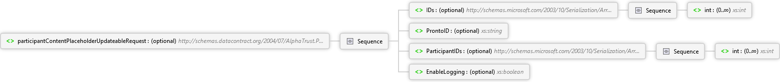 <xs:element minOccurs="0" name="participantContentPlaceholderUpdateableRequest" nillable="true" type="q40:ParticipantContentPlaceholderUpdateableRequestModel" xmlns:q40="http://schemas.datacontract.org/2004/07/AlphaTrust.Pronto.ServiceContracts.Models.Participant" xmlns:xs="http://www.w3.org/2001/XMLSchema" />