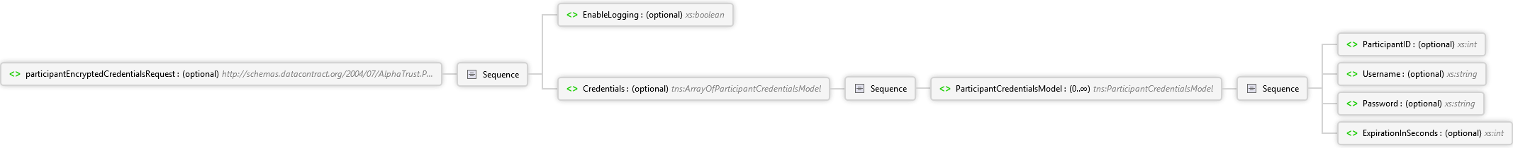 <xs:element minOccurs="0" name="participantEncryptedCredentialsRequest" nillable="true" type="q64:ParticipantEncryptedCredentialsRequestModel" xmlns:q64="http://schemas.datacontract.org/2004/07/AlphaTrust.Pronto.ServiceContracts.Models.Participant" xmlns:xs="http://www.w3.org/2001/XMLSchema" />